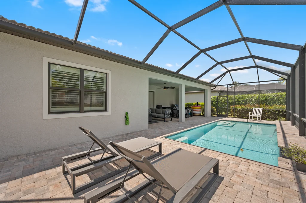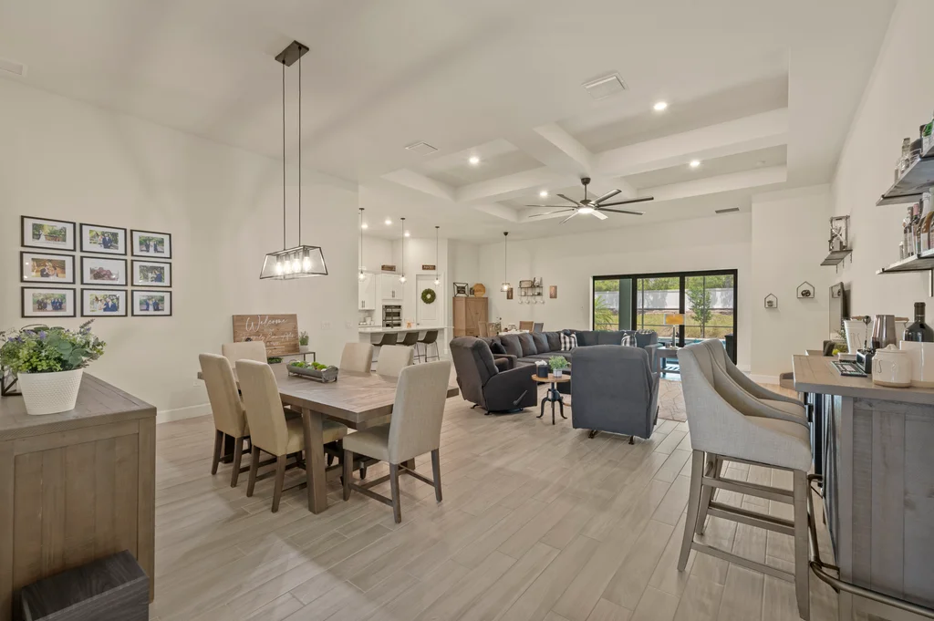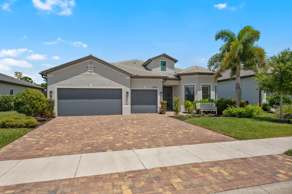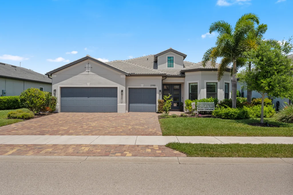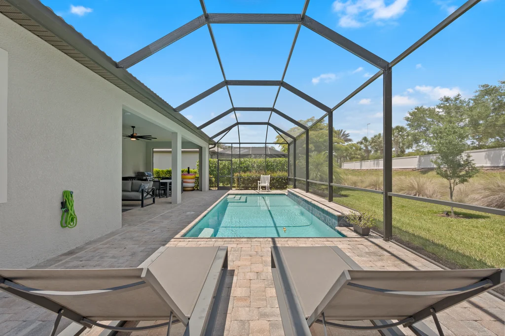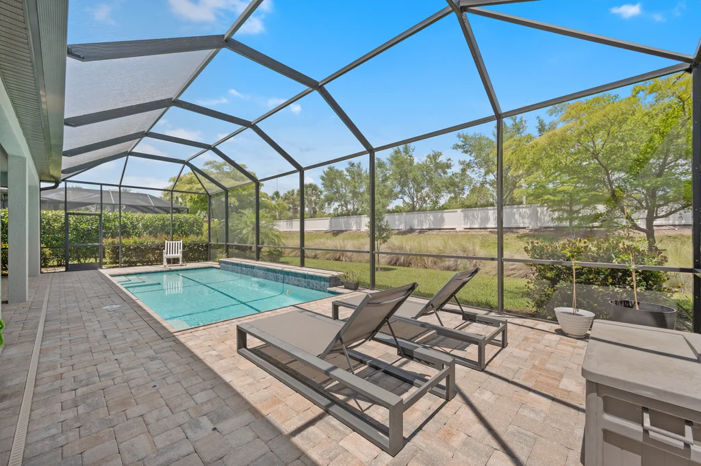 Welcome to your private retreat in the highly sought-after, gated community of Corkscrew Shores—where luxury living meets an active, resort-inspired lifestyle. Centered around a breathtaking 240-acre lake, residents enjoy kayaking, canoeing, and electric or wind-powered boating, along with world-class amenities including a resort-style pool and spa, state-of-the-art fitness center, pickleball, tennis and bocce courts, scenic walking paths, and the on-site Captain’s Club restaurant and bar. Additional amenities include a multi-purpose activity room, movement studio, massage therapy room, playground and picnic pavilion, and sports field, all complemented by a full calendar of clubs and social events that create a vibrant, connected community. This beautifully appointed Stonewater model offers 3 bedrooms + den and is perfectly positioned to enjoy it all—just a short walk to the community’s exceptional amenities. The spacious gathering room with coffered ceilings flows seamlessly into the heart of the home—the upgraded kitchen—featuring quartz countertops, 42” upper cabinetry, stainless steel KitchenAid appliances with built-in oven and microwave, and a walk-in pantry. Multiple dining options include a formal dining space, casual breakfast nook, and breakfast bar—ideal for both entertaining and everyday living. Stylish design details are found throughout, including custom wall accents and plantation shutters. A thoughtfully designed den adds valuable flex space, perfect for a home office, workout room, guest space, or whatever best fits your lifestyle. The owner’s suite serves as a relaxing retreat with a tray ceiling, dual vanities, walk-in shower, and an oversized walk-in closet. A private guest wing with pocket door separation and its own full bath provides comfort and privacy for visitors. Step outside to your own backyard oasis featuring a private pool and an expansive covered lanai, designed for effortless outdoor living, with ample space for dining, lounging, and entertaining year-round. The 3-car garage is designed with both function and lifestyle in mind, offering epoxy floors, overhead storage, an EV charging outlet, and plenty of room for a golf cart—ideal for enjoying all that Corkscrew Shores has to offer. Hurricane impact windows and doors provide added peace of mind. With NO CDD, NOT in a flood zone, and an exceptional blend of location, lifestyle, and amenities, this is a rare opportunity to own in one of Estero’s most sought-after communities. Discover for yourself what makes Corkscrew Shores truly special. Schedule your private showing to experience it firsthand.