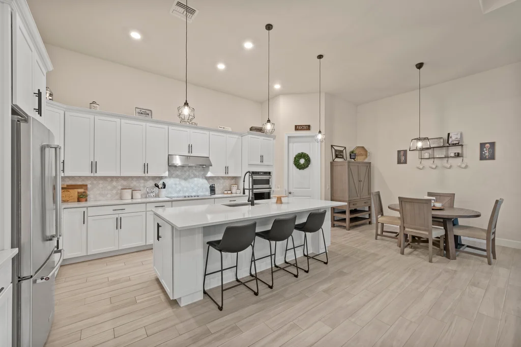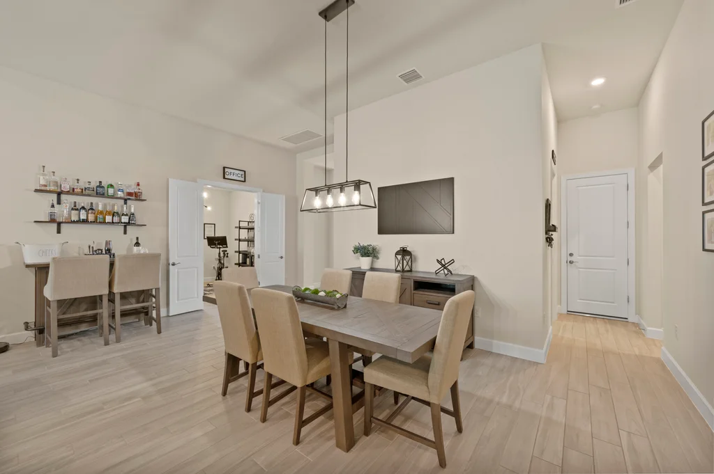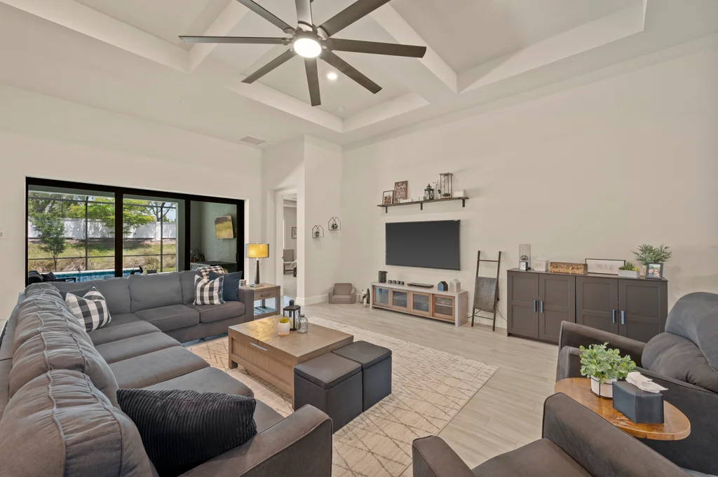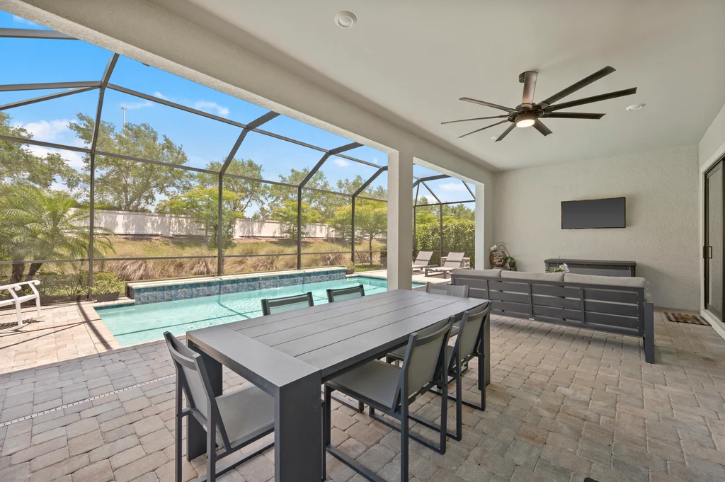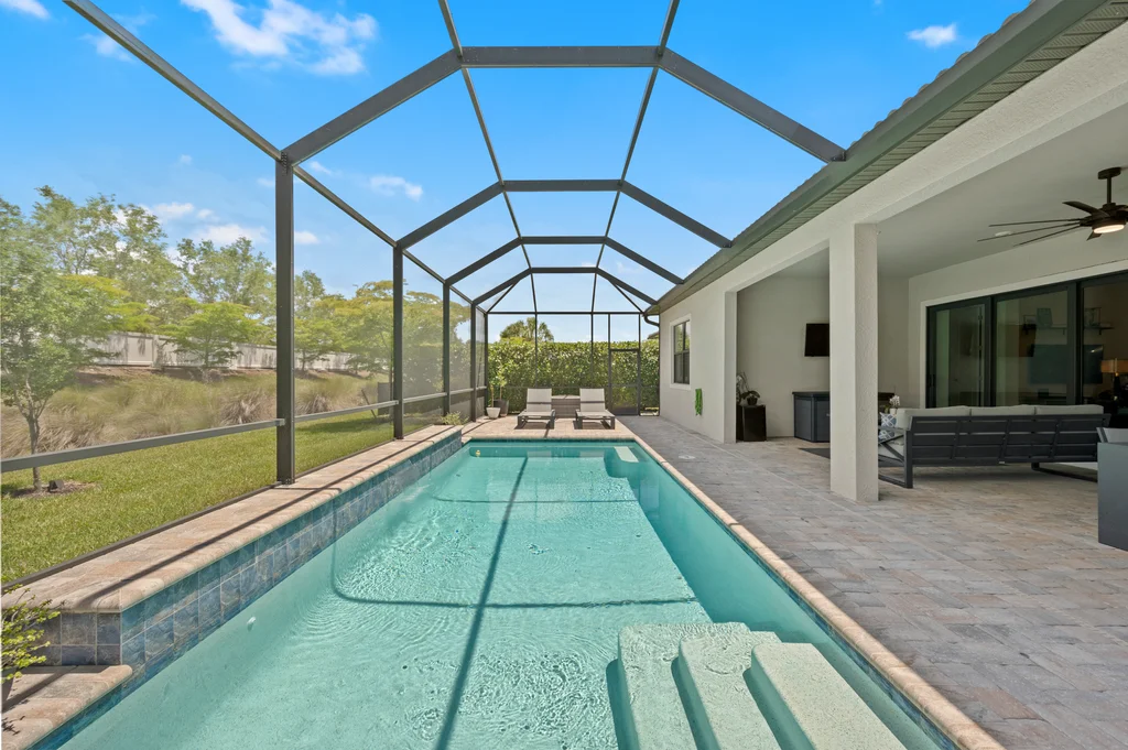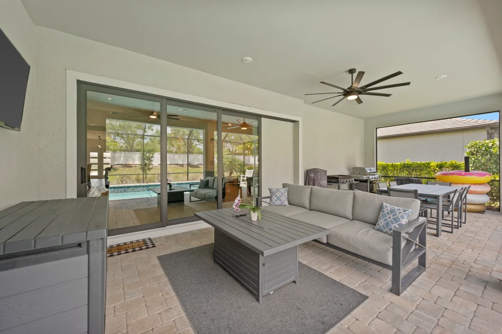 Welcome to your private retreat in the highly sought-after, gated community of Corkscrew Shores—where luxury living meets an active, resort-inspired lifestyle. Centered around a breathtaking 240-acre lake, residents enjoy kayaking, canoeing, and electric or wind-powered boating, along with world-class amenities including a resort-style pool and spa, state-of-the-art fitness center, pickleball, tennis and bocce courts, scenic walking paths, and the on-site Captain’s Club restaurant and bar. Additional amenities include a multi-purpose activity room, movement studio, massage therapy room, playground and picnic pavilion, and sports field, all complemented by a full calendar of clubs and social events that create a vibrant, connected community. This beautifully appointed Stonewater model offers 3 bedrooms + den and is perfectly positioned to enjoy it all—just a short walk to the community’s exceptional amenities. The spacious gathering room with coffered ceilings flows seamlessly into the heart of the home—the upgraded kitchen—featuring quartz countertops, 42” upper cabinetry, stainless steel KitchenAid appliances with built-in oven and microwave, and a walk-in pantry. Multiple dining options include a formal dining space, casual breakfast nook, and breakfast bar—ideal for both entertaining and everyday living. Stylish design details are found throughout, including custom wall accents and plantation shutters. A thoughtfully designed den adds valuable flex space, perfect for a home office, workout room, guest space, or whatever best fits your lifestyle. The owner’s suite serves as a relaxing retreat with a tray ceiling, dual vanities, walk-in shower, and an oversized walk-in closet. A private guest wing with pocket door separation and its own full bath provides comfort and privacy for visitors. Step outside to your own backyard oasis featuring a private pool and an expansive covered lanai, designed for effortless outdoor living, with ample space for dining, lounging, and entertaining year-round. The 3-car garage is designed with both function and lifestyle in mind, offering epoxy floors, overhead storage, an EV charging outlet, and plenty of room for a golf cart—ideal for enjoying all that Corkscrew Shores has to offer. Hurricane impact windows and doors provide added peace of mind. With NO CDD, NOT in a flood zone, and an exceptional blend of location, lifestyle, and amenities, this is a rare opportunity to own in one of Estero’s most sought-after communities. Discover for yourself what makes Corkscrew Shores truly special. Schedule your private showing to experience it firsthand.