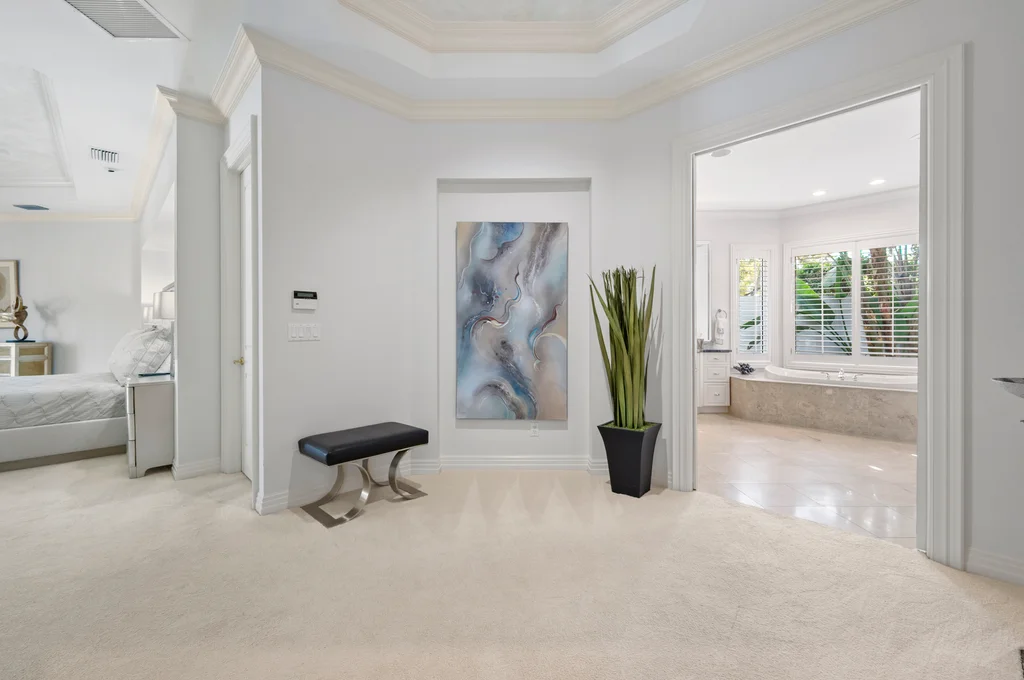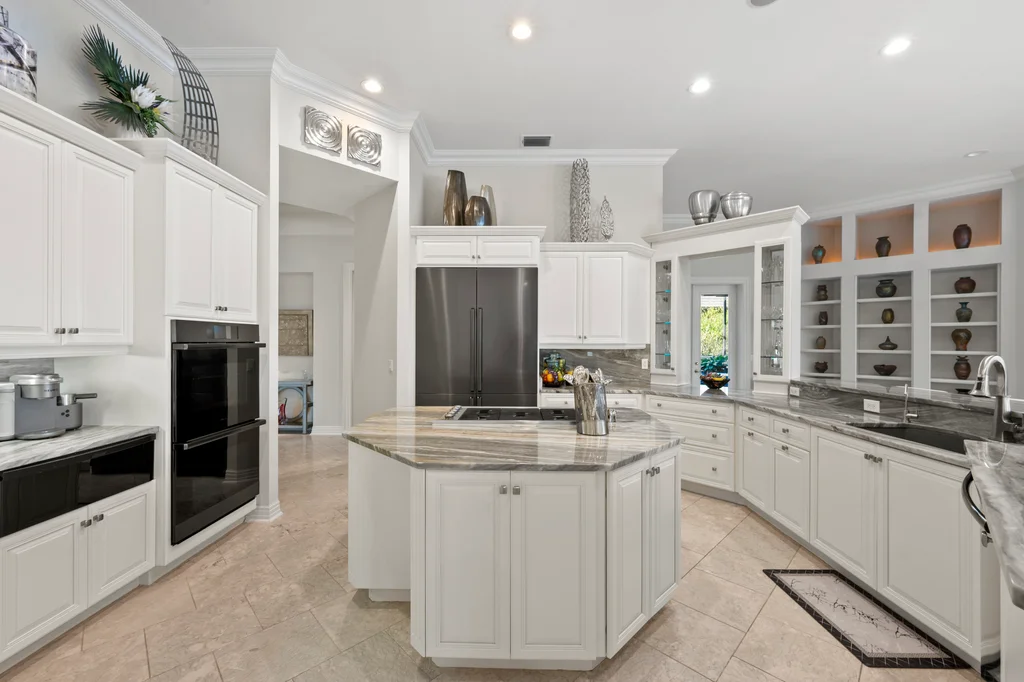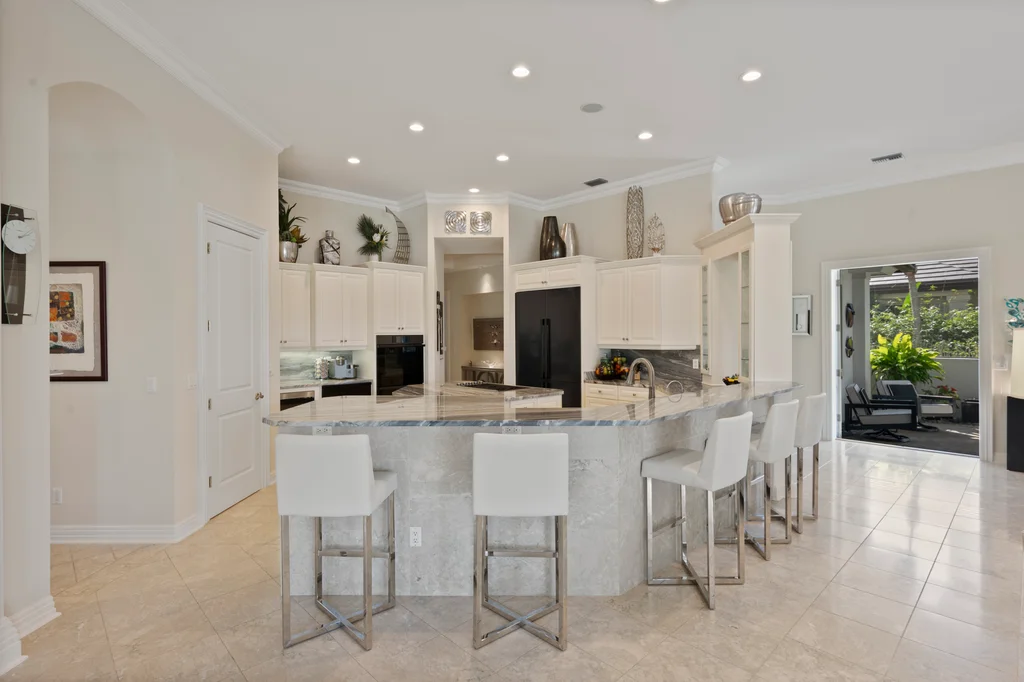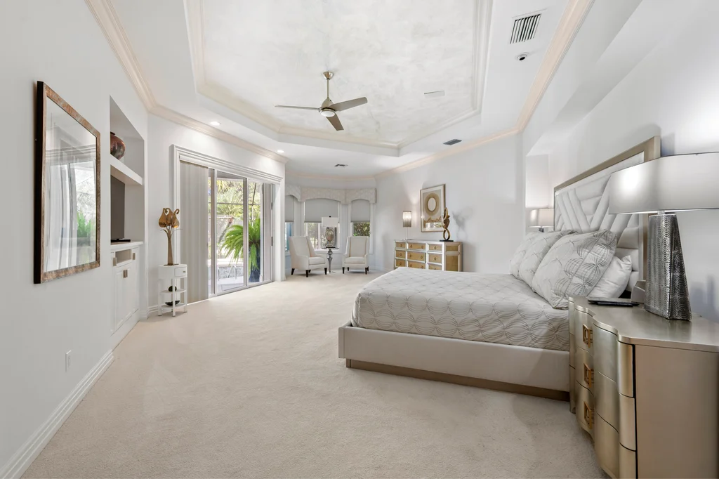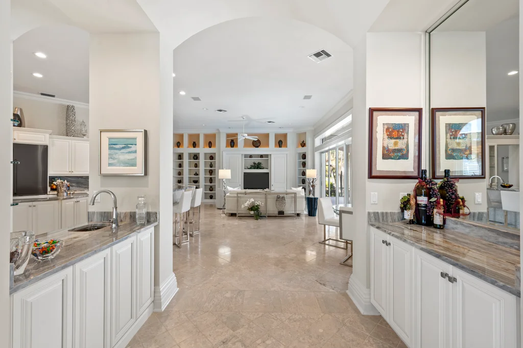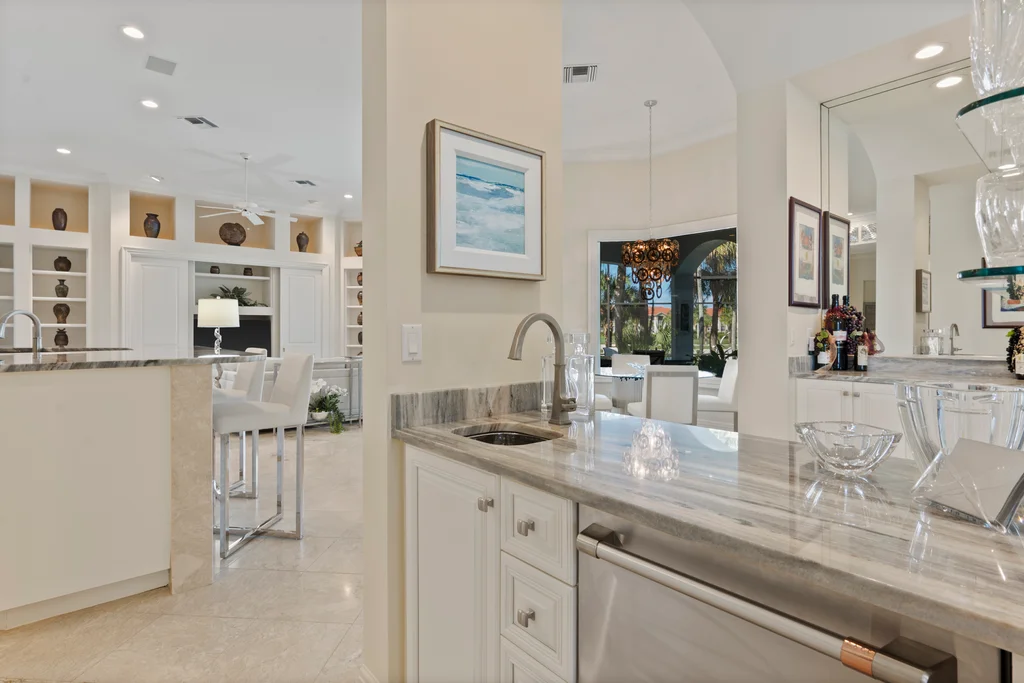 In the quiet elegance of Deerwood, where the Bay Island course stretches out like a living painting, a Harwick-built masterpiece waits for its next chapter. Over 5,200 square feet of sun-drenched, effortless living From the moment you step inside, the home unfolds with a sense of calm confidence. Light pours through every space, gliding across stone floors and rich, refined décor. High-quality built-ins showcase the collector’s eye, while soaring 14-foot ceilings and pocketing sliders erase the boundary between indoors and out. The kitchen is the heart of it all: custom cabinetry, luxurious countertops, Dacor appliances with double wall ovens and gas cooking, a generous walk-in pantry, and a layout designed for real living. Morning coffee in the sunlit breakfast room. Quiet moments in the private screened courtyard. Effortless entertaining thanks to a beautifully designed beverage station with refrigeration drawers. Step outside and the world softens. A tranquil lanai wraps around a sparkling pool and spa, framed by peaceful golf-course views. A covered lounge area, a bar for gathering, and the kind of privacy that feels like a retreat — yet you’re minutes from everything Bonita Bay offers. The primary suite is its own sanctuary — serene, spacious, and thoughtfully appointed with a spa-like bath that turns daily routines into rituals. A generous sitting area overlooks the pool and greens, inviting slow mornings and quiet evenings. Guests will love the private cabana suite with its morning kitchen and sweeping views. The study, wrapped in floor-to-ceiling cabinetry, inspires creativity and focus. And above the garage, a private air-conditioned bonus room offers endless possibility — a studio, a workshop, a hobby haven. Practical luxuries complete the picture: a 500-gallon propane tank for gas cooking and future outdoor enhancements, a WHOLE HOUSE GENERATOR, fresh exterior paint, and a newer roof (2016). 4430 Deerwood Court isn’t just a home — it’s a chance to live the Bonita Bay lifestyle at its most intimate and inspiring. Five championship golf courses. A full-service marina. A private beach park. Miles of shaded trails. Fitness, tennis, pickleball, and a social scene that feels both elevated and easy.