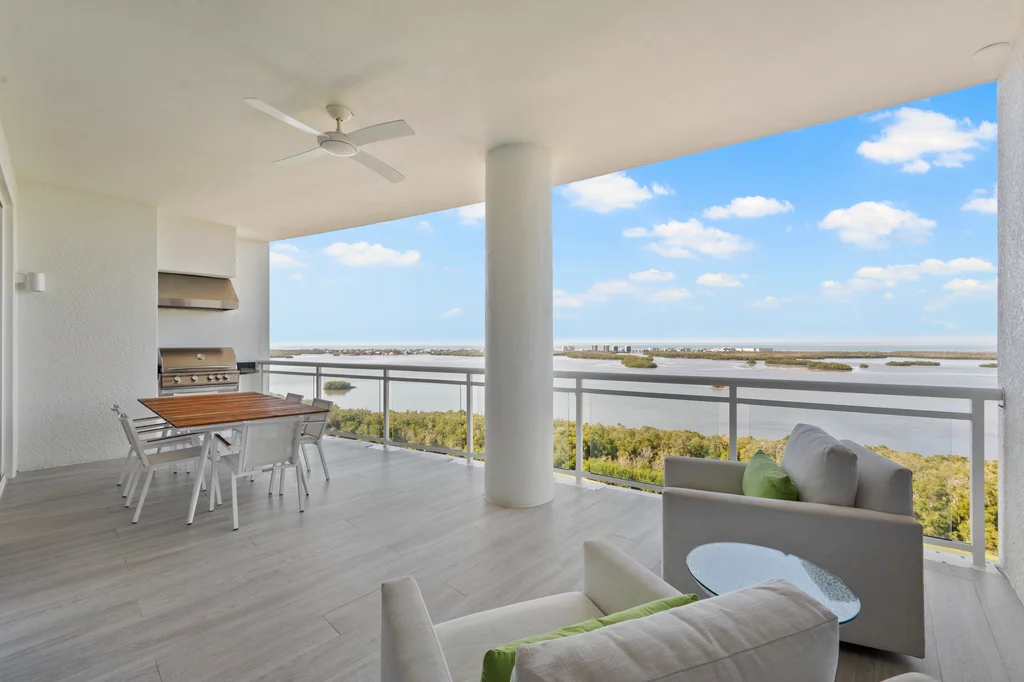 Welcome to the kind of home people dream about when they imagine life on the Gulf Coast. Perched on the 16th floor of Bonita Bay’s iconic Seaglass tower, this residence isn’t just a place to live — it’s a front row seat to Southwest Florida’s most breathtaking sunsets, morning light, and endless horizon views. From the moment you step inside floor to ceiling glass draws your eyes straight to the Gulf, the Bay, and the lush golf course canopy below — a daily reminder that nature is the true luxury here. The open great room and expansive terrace create a seamless indoor outdoor flow, perfect for slow mornings with coffee or evenings spent watching the sky turn shades of gold and coral while grilling out on the impressive Blaze Marina grade grill. Lasting for years to come. The gourmet kitchen with Thermador appliances is designed for the way people actually live and gather — a large island for conversation for effortless cooking, and a layout that keeps you connected to the views and the people you love. The owner’s suite feels like a private retreat in the sky, complete with terrace access, and a spa inspired bath. Two additional guest suites offer comfort and privacy, while the den provides flexible space for work, creativity, or quiet moments. Life at Seaglass is pure resort living. Spend your days floating in the resort style pool, unwinding in the spa, hosting friends in the club room, or catching a movie in the private theater. Start your mornings in the state of the art fitness center, then wander miles of shaded walking paths or head to Bonita Bay’s private beach park for toes in the sand simplicity. With five championship golf courses, a full service marina, pickleball, tennis, and a vibrant social scene, Bonita Bay offers a lifestyle that feels both elevated and effortless — a rare blend of luxury, nature, and community. Unit 1603 is more than a residence. It’s a sanctuary in the sky, a daily escape, and a chance to live the Bonita Bay lifestyle at its most beautiful.