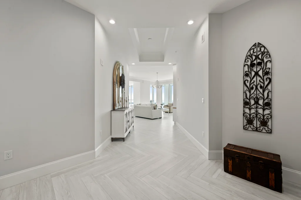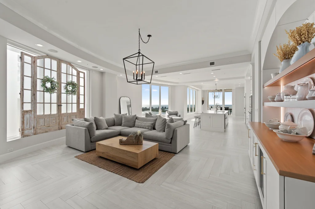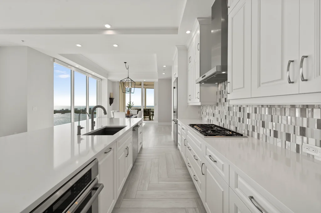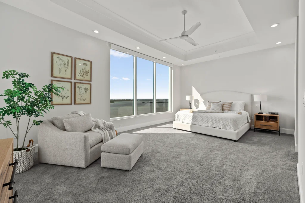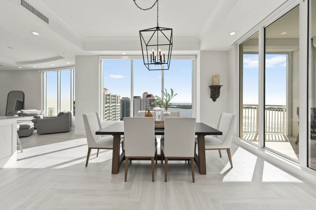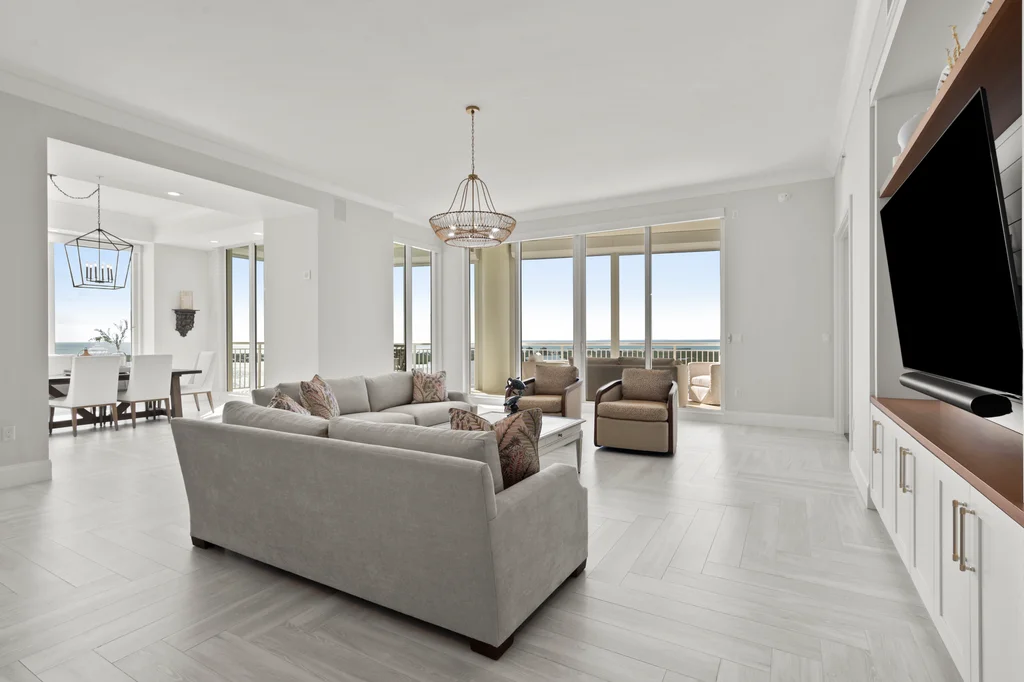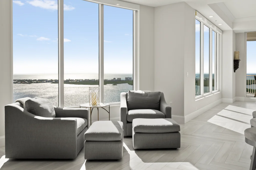 This stunning 25th-floor Penthouse offers breathtaking panoramic views of Estero Bay and the Gulf of America with a 2 1/2-car garage. Spanning approximately 4,590 square feet, this 4-bedroom, 5-bathroom condo is a masterpiece of modern design and elegance. The open-concept living area features floor-to-ceiling windows, showcasing natural light and the spectacular vistas. The chef's kitchen has top-of-the-line Thermador appliances, gas cooking, a wine chiller, double ovens, sleek cabinetry, and a spacious island perfect for entertaining. Each of the 4 bedrooms offers a private retreat, complete with en-suite bathrooms and fabulous views. While preparing dinner, step onto the expansive balcony with a gas grill to enjoy serene sunsets and gentle Gulf Breeze. Residents of Seaglass enjoy world-class amenities, including a resort-style pool, state-of-the-art fitness center, spa, and access to Bonita Bay's private beach club, golf courses, and marina. Located in the heart of Bonita Springs, this property offers the perfect blend of tranquility and convenience, with fine dining, shopping, and cultural attractions just moments away. Don't miss the opportunity to own a piece of paradise in one of Southwest Florida's most prestigious communities!